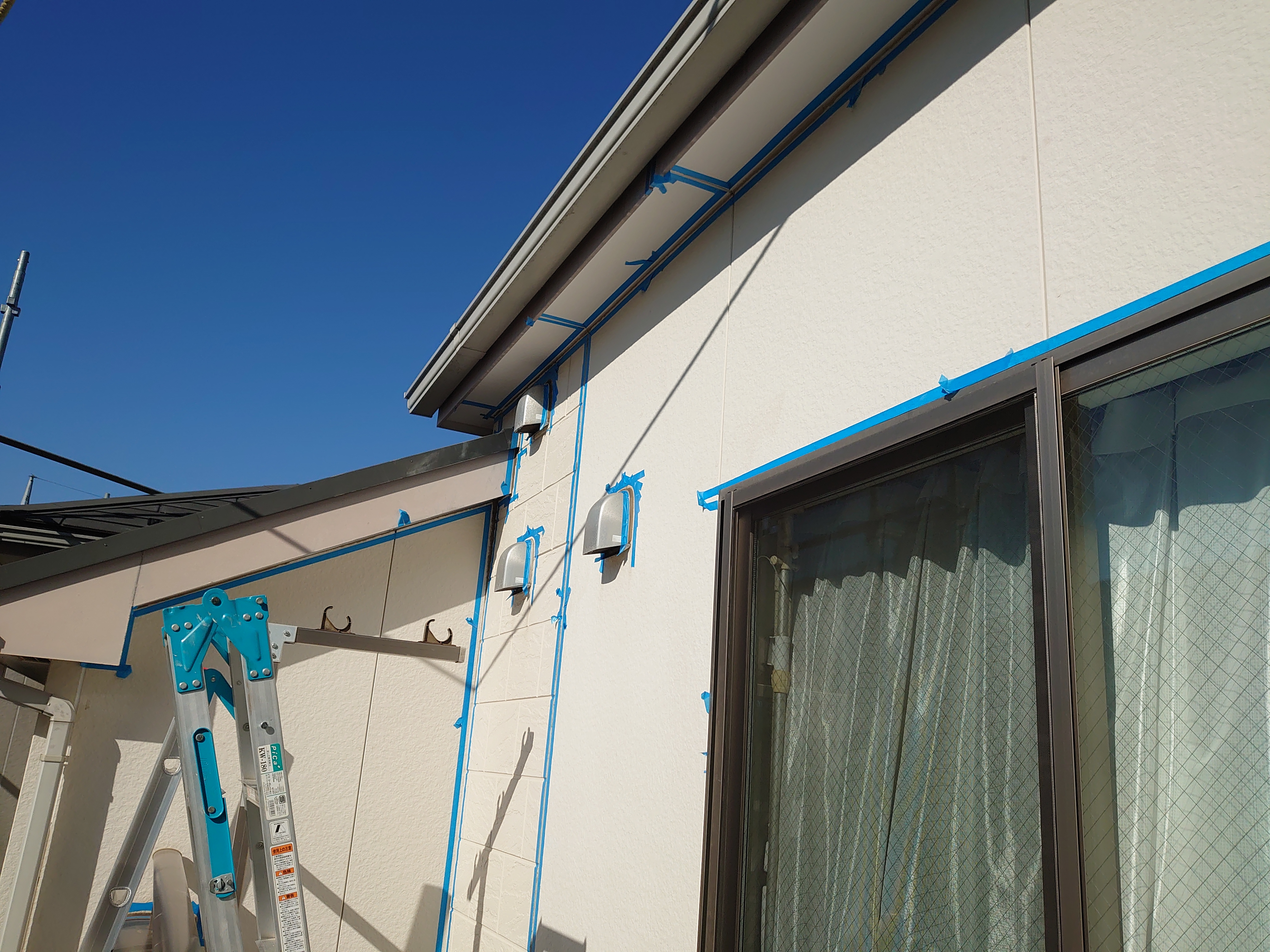 養生(塗装する周辺やその他塗材が付いてはいけないところをテープ等で覆ってから作業します。